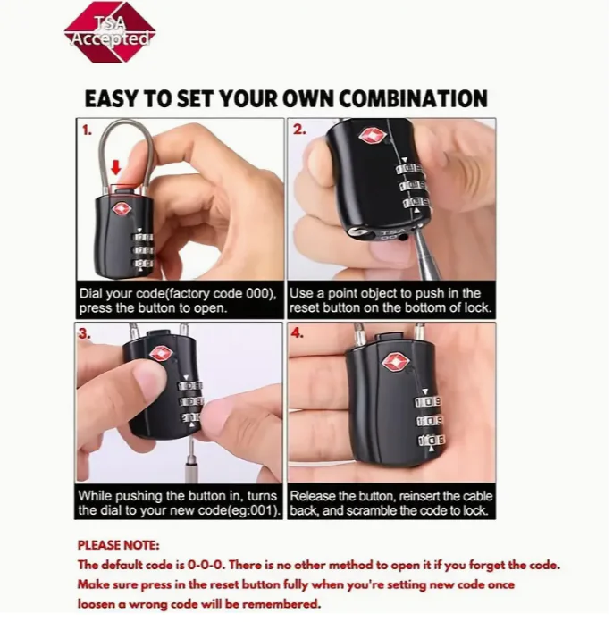 Keep your belongings secure with this 3-Digit Combination Lock, built from durable ABS material for reliable, long-lasting protection. The password-reset feature allows you to set your own secure code, while the smooth-turn dials ensure quick and hassle-free operation. Lightweight yet strong, this safety padlock is perfect for travel luggage, school lockers, gym bags, backpacks, toolboxes, and bicycles.