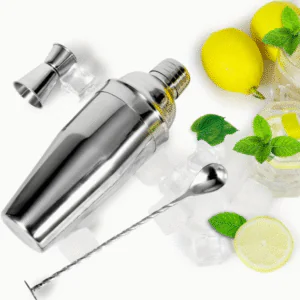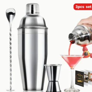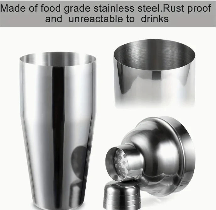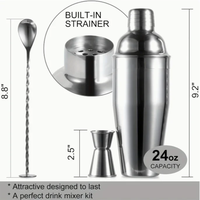 Includes a 24oz (750ml) cocktail shaker with a leak-proof, airtight lid