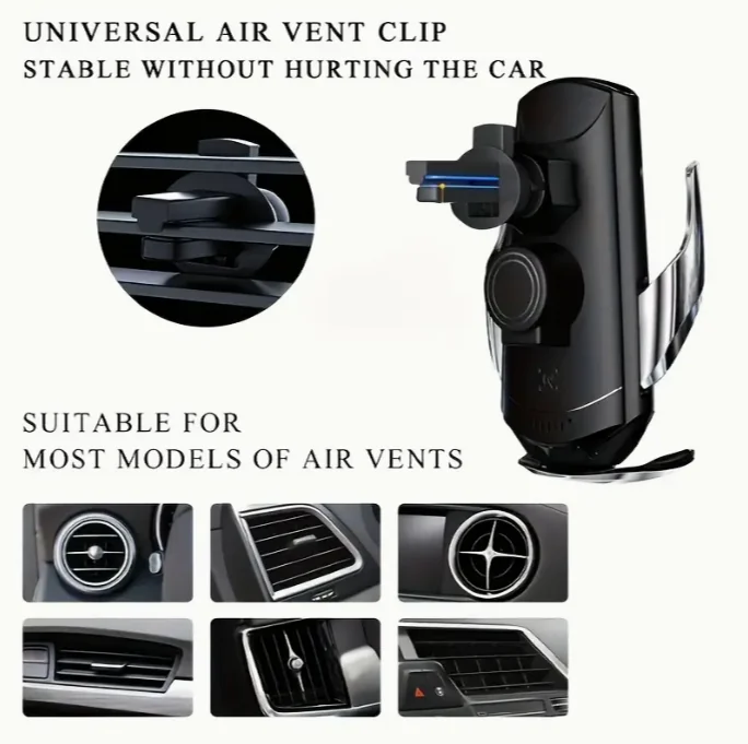 AutoLock 15W Wireless Fast Charger – Air Vent Phone Mount (Black) for iPhone & Samsung Galaxy