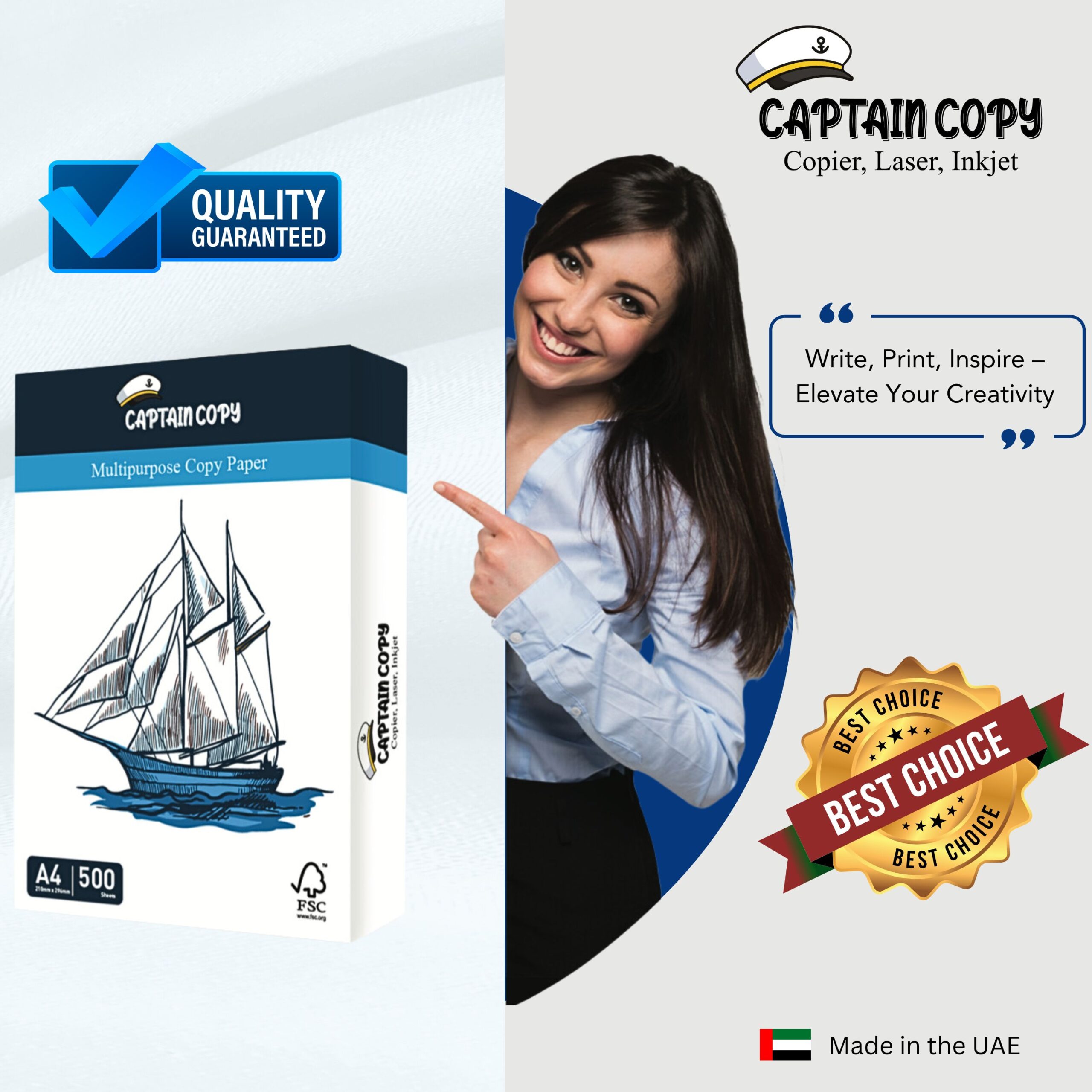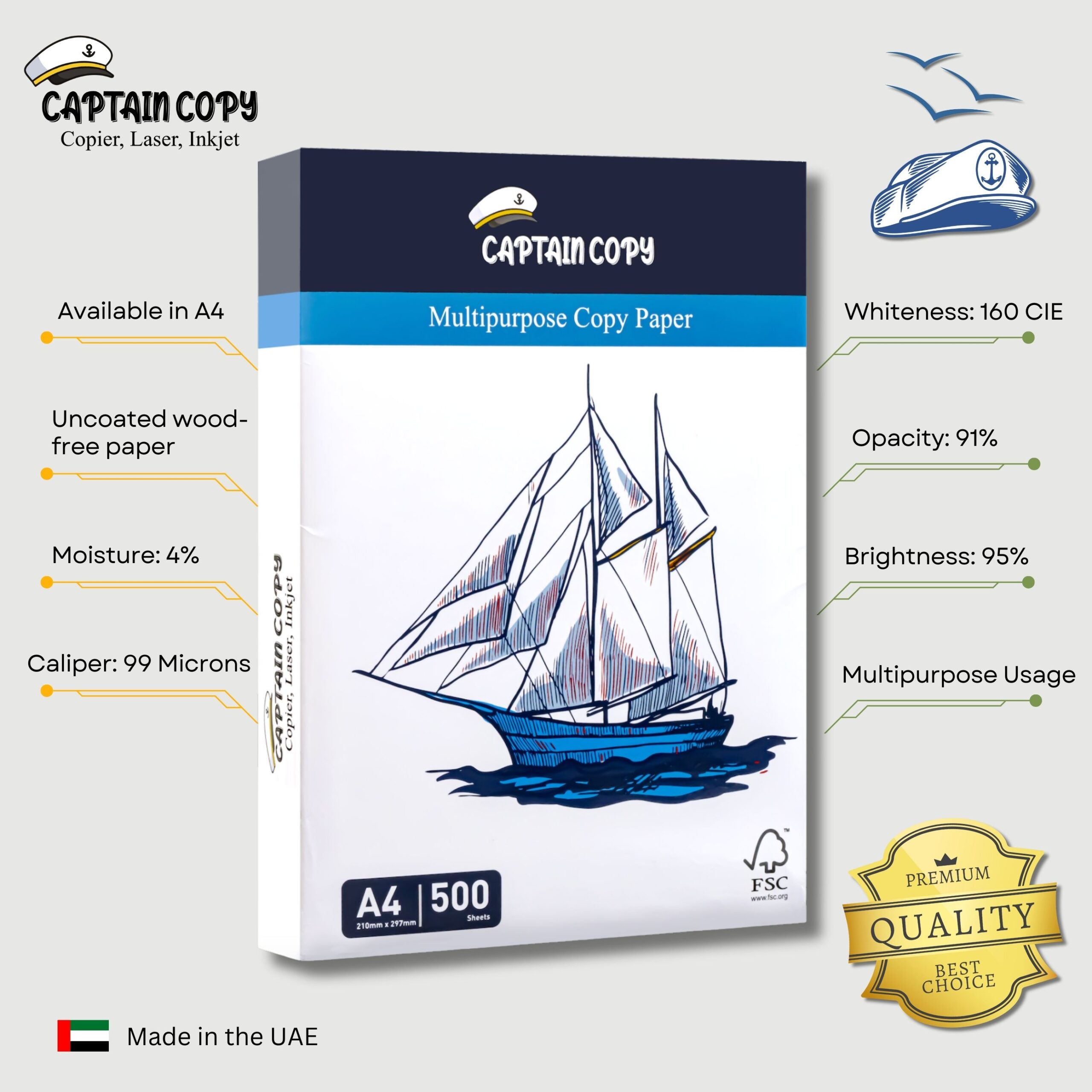 Captain Copy Multipurpose Copy Paper – The trusted paper for clarity, quality, and performance, made in the UAE.