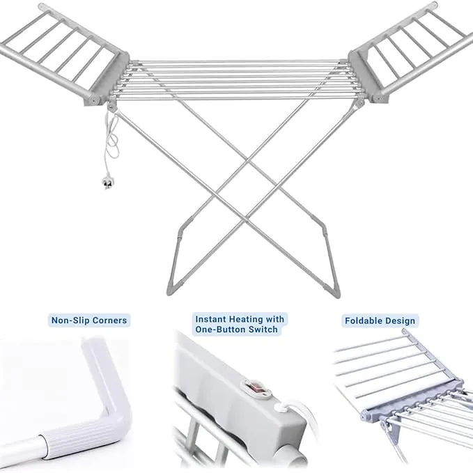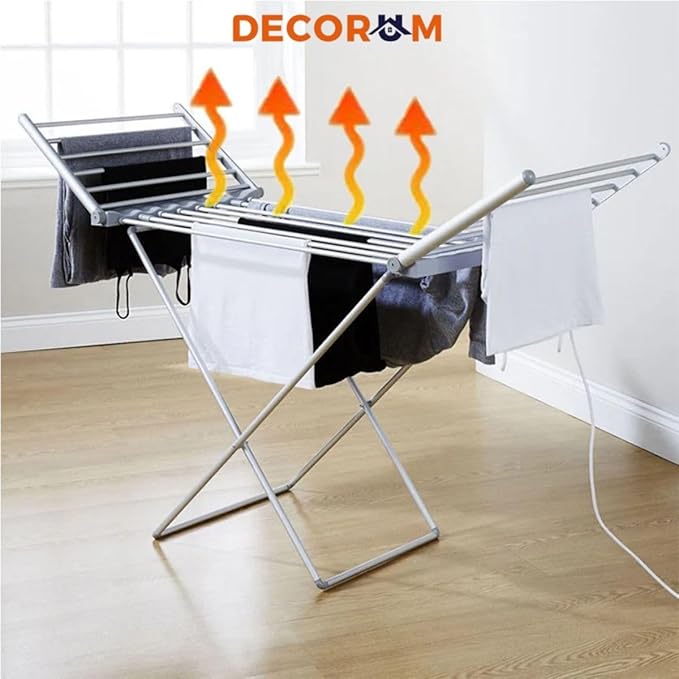 - Fast & Efficient Drying – The Decorum Foldable Electric Heated Clothes Drying Stand delivers quick drying with its 20 integrated heat pipes that distribute warmth evenly, ensuring your clothes are ready in no time.