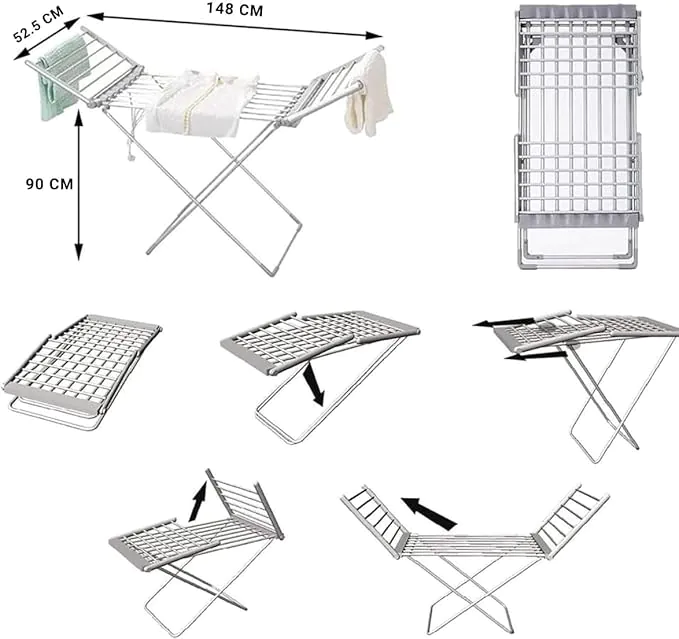 - User-Friendly & Safe – Equipped with a 3-pin plug for secure connection, the dryer is lightweight yet strong enough to hold multiple garments at once, making it the ideal space-saving solution for modern homes.
