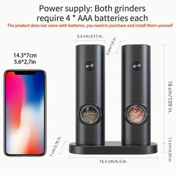 Dual Electric Spice Grinders – Automatic Battery-Operated Salt & Pepper Mills for Kitchen & Dining | Sleek Everyday Design | Kasa Deals