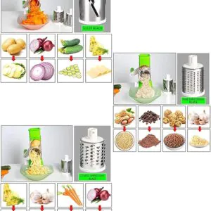 Make food prep faster, easier, and safer with the ECVV 3-in-1 Rotary Drum Vegetable Slicer, the perfect kitchen companion for cutting vegetables, fruits, cheese, nuts, chocolate, and more. Designed with three interchangeable stainless steel drums, this slicer lets you slice, shred, or grate in seconds—without the need for knives or complicated appliances.