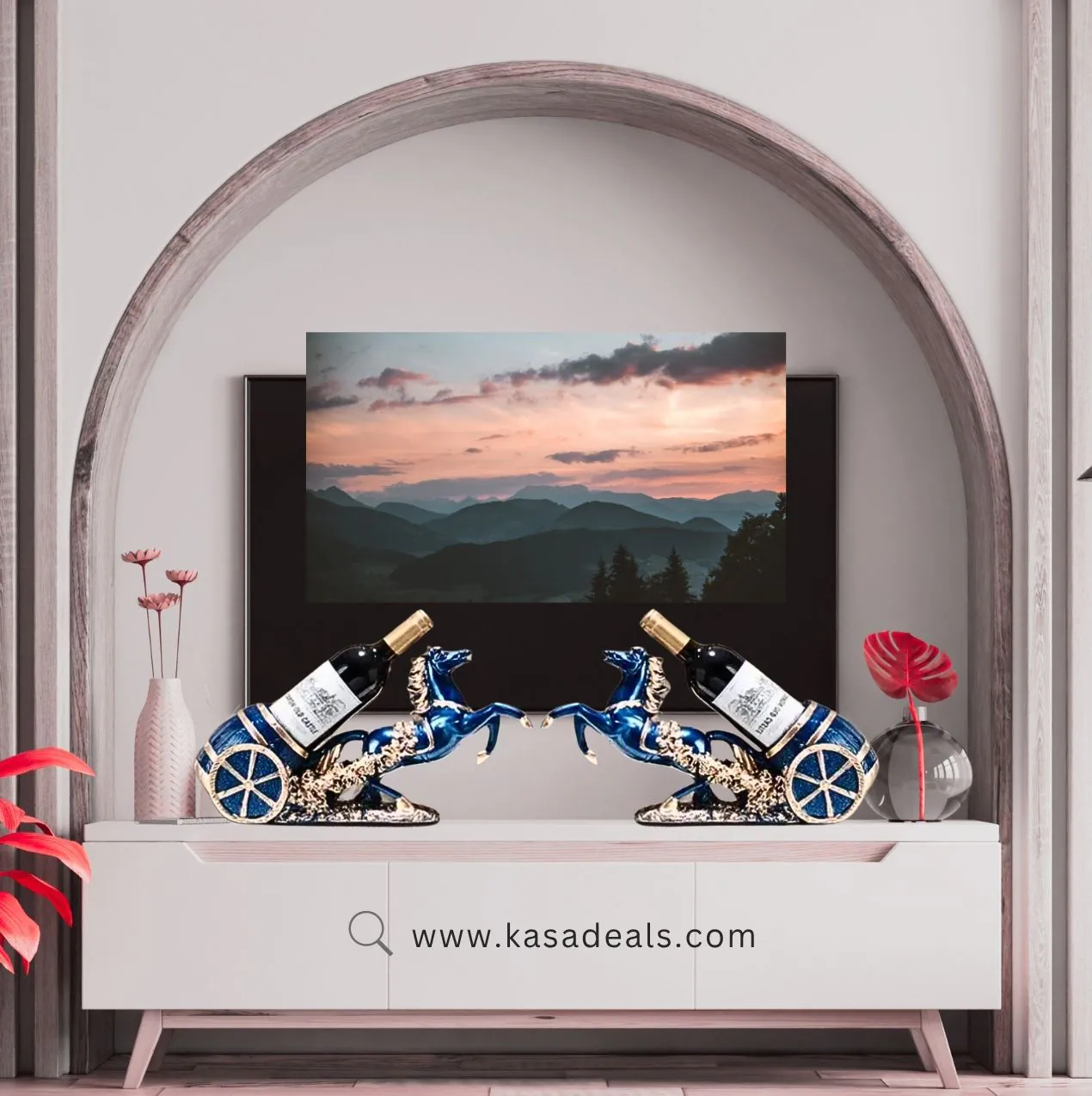 Add a touch of timeless sophistication to your home with the Equestrian Elegance Wine Stand. Designed with a luxurious blue horse motif and finished with golden accents, this artistic wine rack combines functionality with high-end décor appeal. Perfect for wine enthusiasts and lovers of equestrian charm, it serves as both a practical holder and a striking centerpiece.