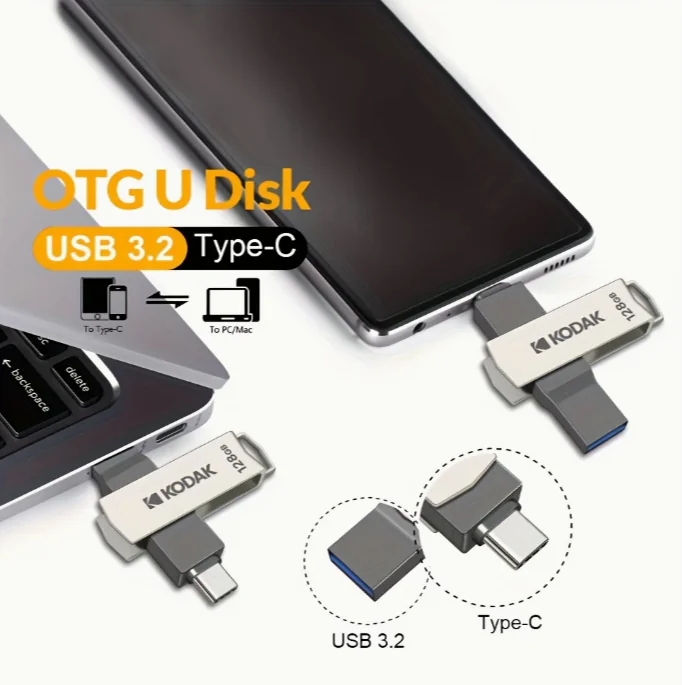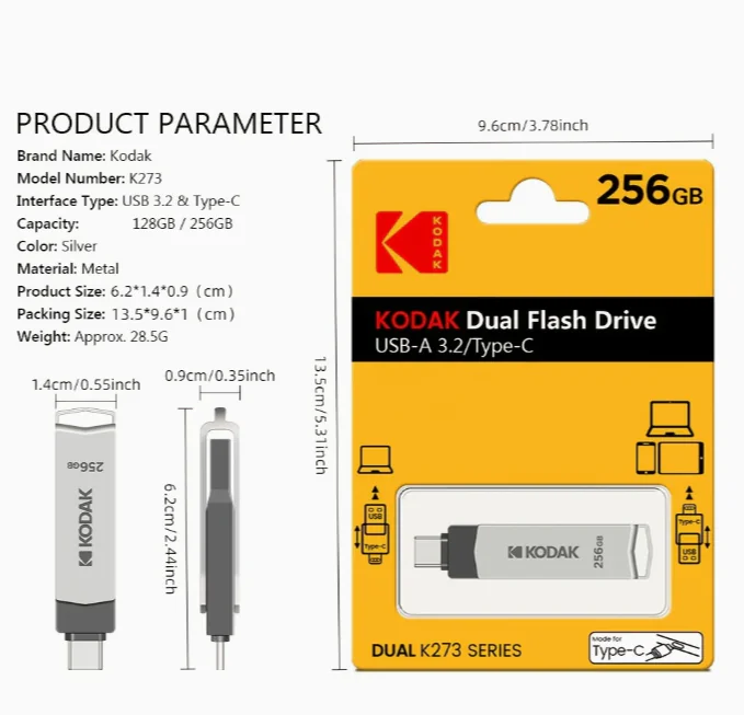 Kodak High-Speed Metal Flash Drive – USB 3.2 OTG Stick (128GB / 256GB) – Model K273