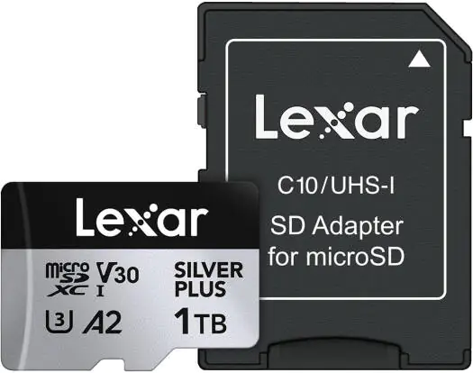 Lexar Professional SILVER PLUS 1TB microSDXC UHS-I Memory Card – Up to 205MB/s Read, 150MB/s Write, V30 Rated, IPX7 Waterproof