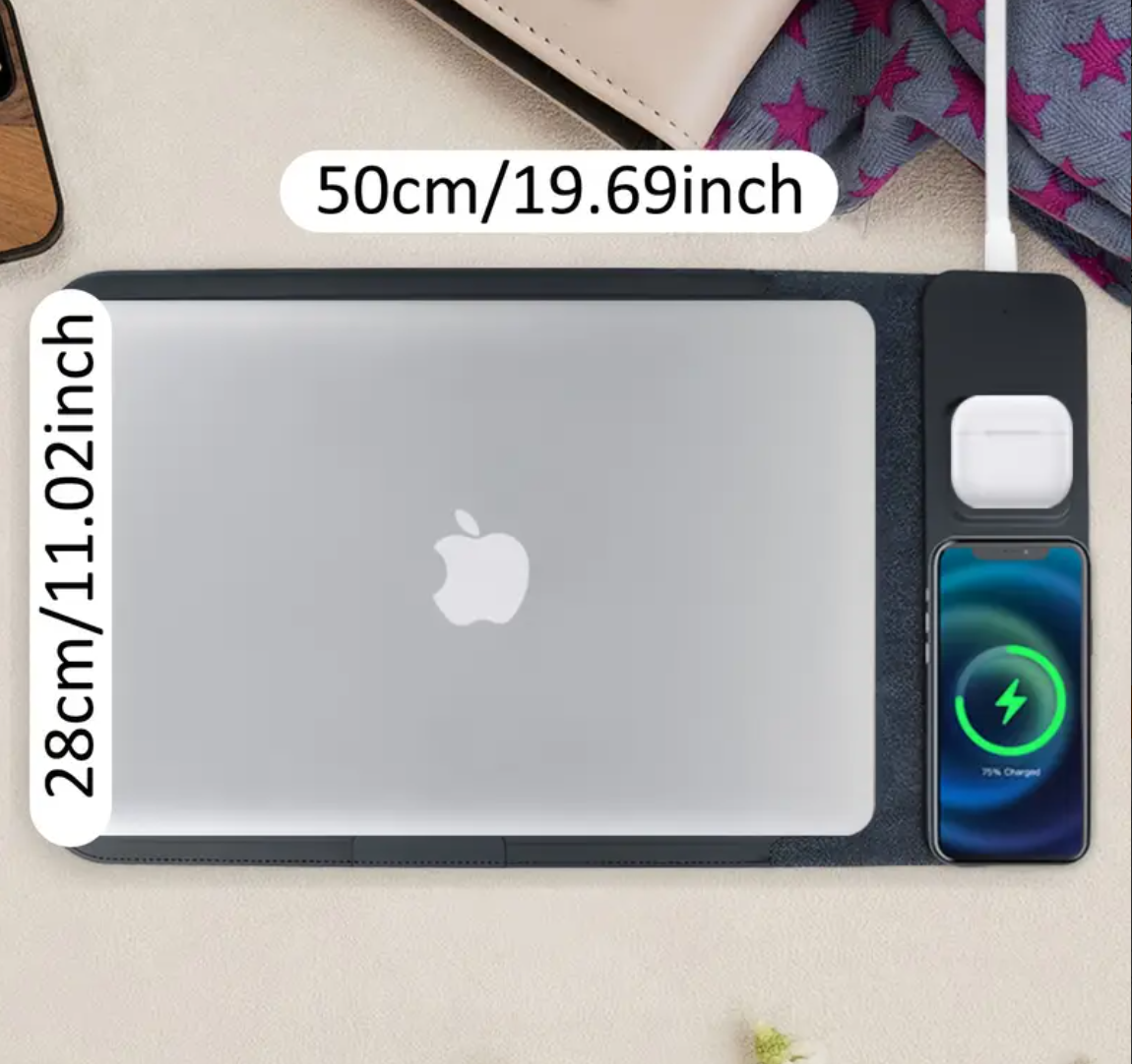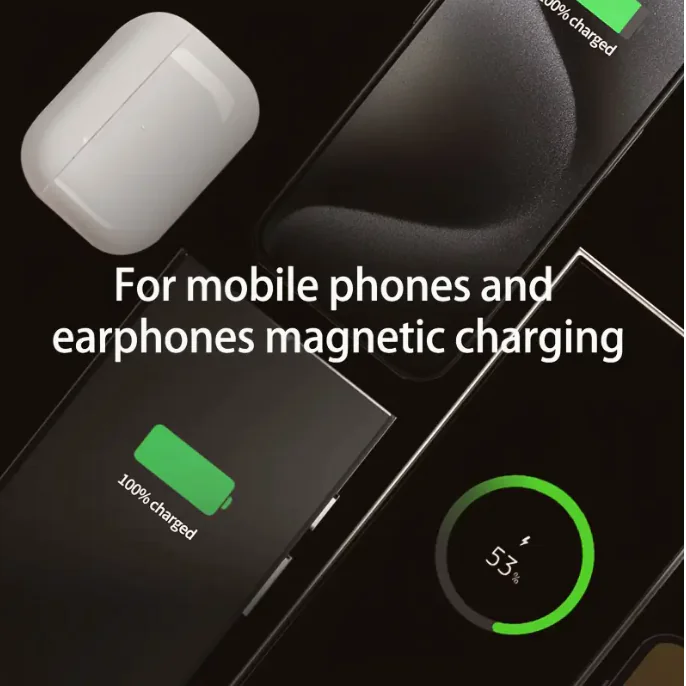 Upgrade your workspace with this 5-in-1 Magnetic Charging Hub, designed for fast, clutter-free charging across all your essential devices. Featuring a powerful magnetic stand, it securely holds your phone for hands-free viewing while charging. With high-speed outputs for MacBook, iPhone, Android phones, Apple Watch, and AirPods, this hub becomes your all-in-one power station. The included Tech Sleeve keeps cables and gadgets neatly organized—perfect for home, office, and travel.