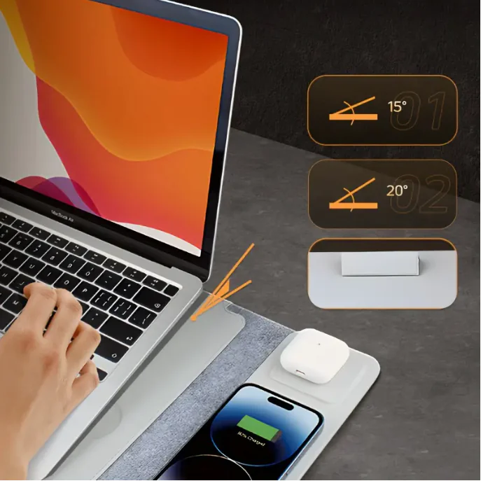 5-in-1 Magnetic Charging Hub with Adjustable Stand & Tech Sleeve – Fast Wireless Station for MacBook, iPhone, Android & Apple Devices