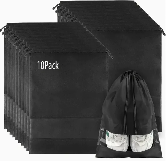 Pack of 10 Dust-Free Drawstring Shoe Pouches – Lightweight Travel & Closet Organizers for Shoes and Essentials | Kasa Deals