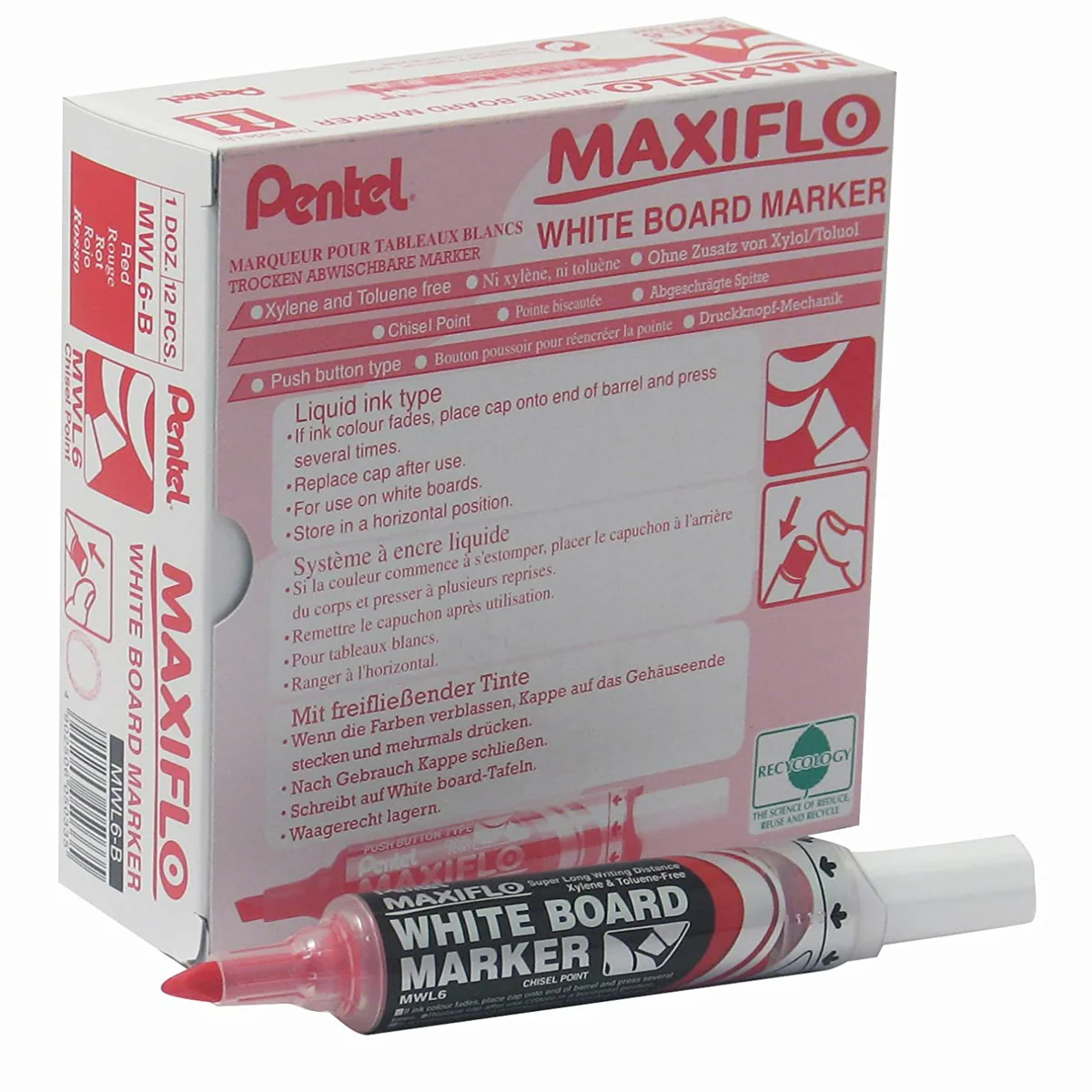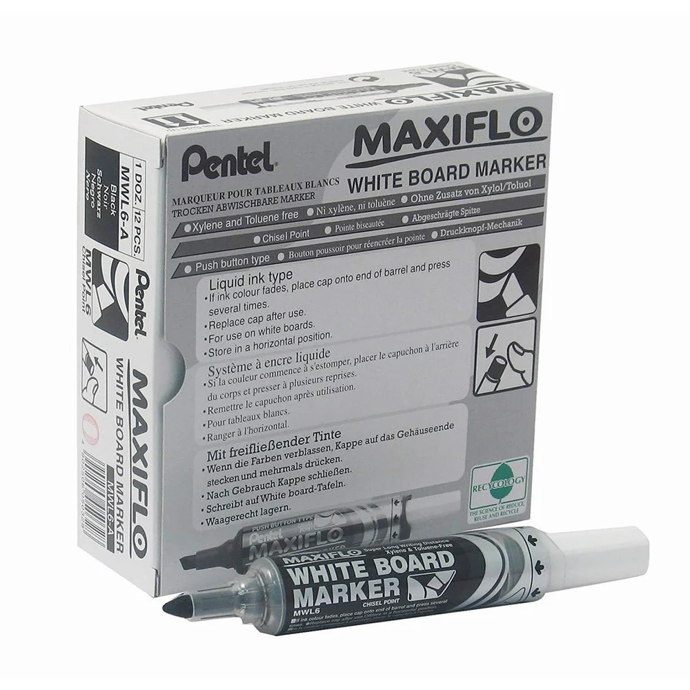 ✍️ PENTEL Maxiflo Whiteboard Marker, Chisel Tip | Box of 12 | PE-MWL6