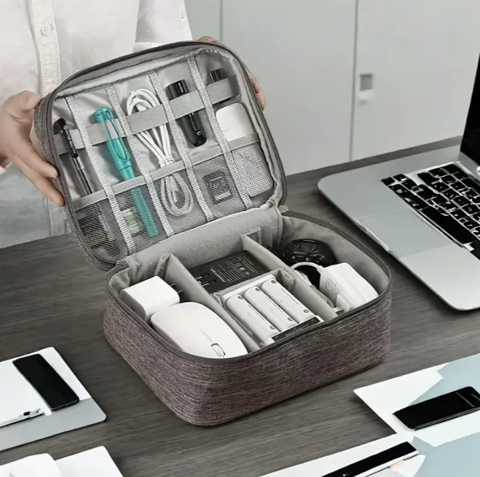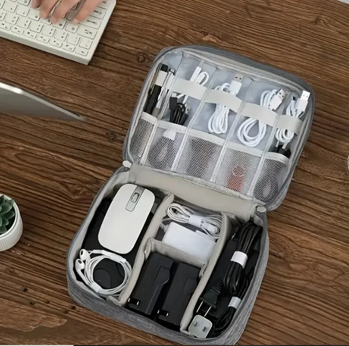 Keep your gadgets and accessories neatly organized and easily accessible with the Portable Electronic Storage Pouch, available at Kasa Deals. Designed for travelers, professionals, and tech enthusiasts, this dual-compartment organizer securely stores cables, chargers, power banks, USB drives, earphones, and more—making it a must-have accessory for everyday convenience and travel.