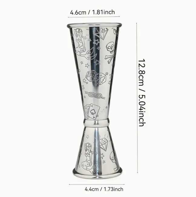 Premium Stainless Steel Liquor Jigger – Double-Sided Bar Measuring Tool with Rolled Edge & Etched Design (30/60ml)