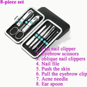 💅 Complete Grooming Kit – Includes essential tools like nail clippers, nail files, cuticle trimmers, ear spoons, tweezers, and more (8 pieces).