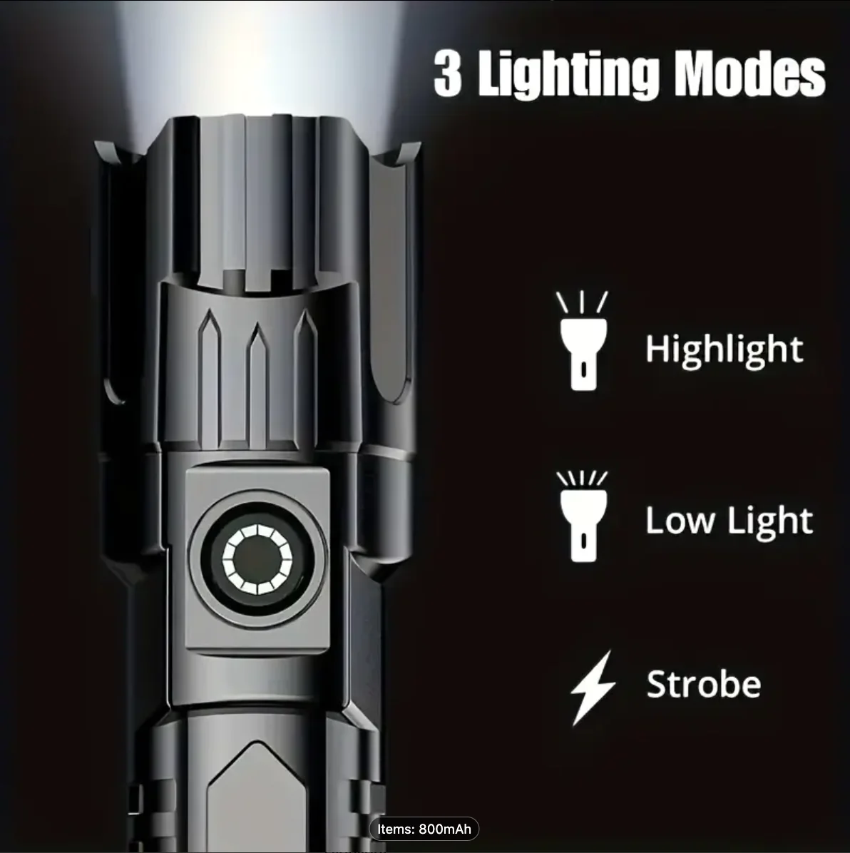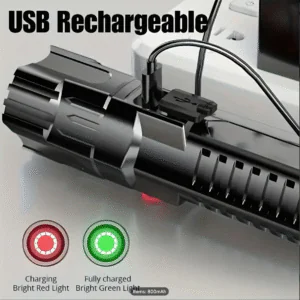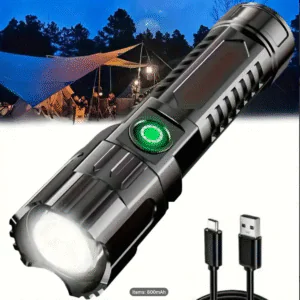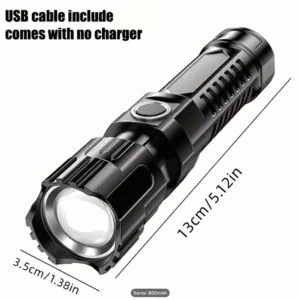 The built-in 800mAh rechargeable lithium battery provides long-lasting performance, and the included USB charging cable ensures quick and convenient power-ups from any USB port. Made with a sturdy, shock-resistant body, this flashlight is built to handle outdoor challenges, daily use, and unexpected weather conditions. Its compact size fits easily into your pocket, backpack, car, or emergency kit.