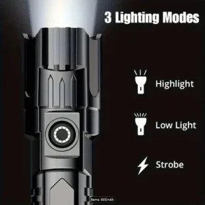 • Lighting Modes: 3 brightness levels – High, Low, and Strobe for versatile use