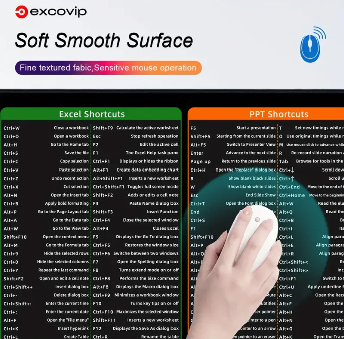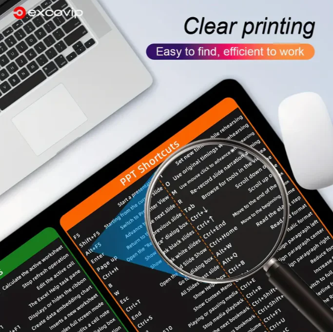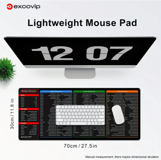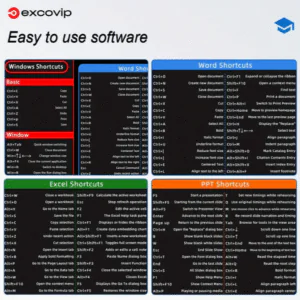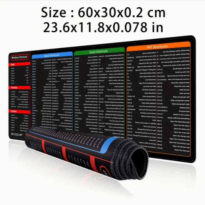 Boost your productivity with the Shortcut Key Mouse Pad, a large XL desk mat designed for fast learners, office professionals, students, gamers, and coders. Featuring a clear Windows & MS Office Hotkeys Guide, this mouse pad helps you work smarter by keeping essential shortcuts right at your fingertips.