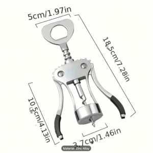 Designed for both beginners and seasoned wine lovers, this opener features a labor-saving lever mechanism that reduces effort and maximizes control. Its balanced weight and comfortable grip make it ideal for regular use in kitchens, home bars, restaurants, and gatherings. Compact, sleek, and easy to store, it fits perfectly in drawers, bar setups, and wine accessory kits.