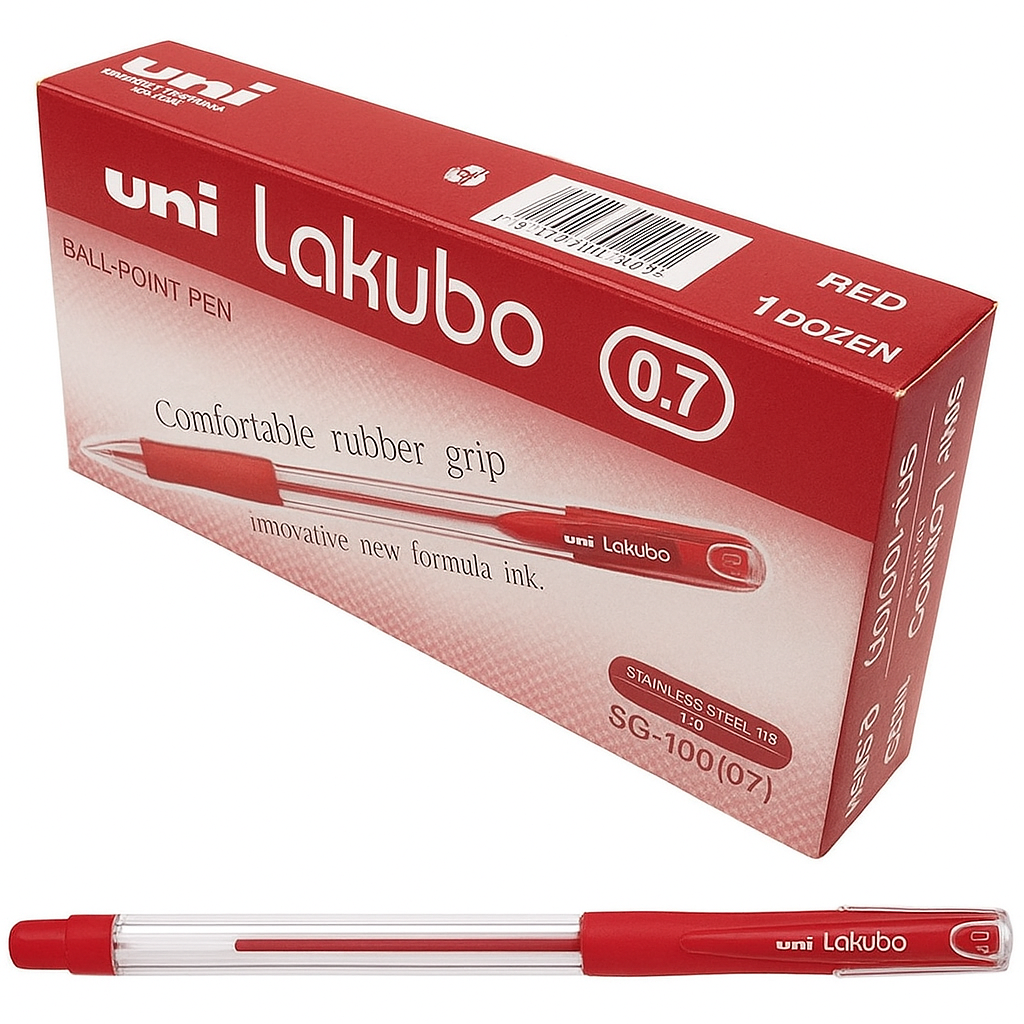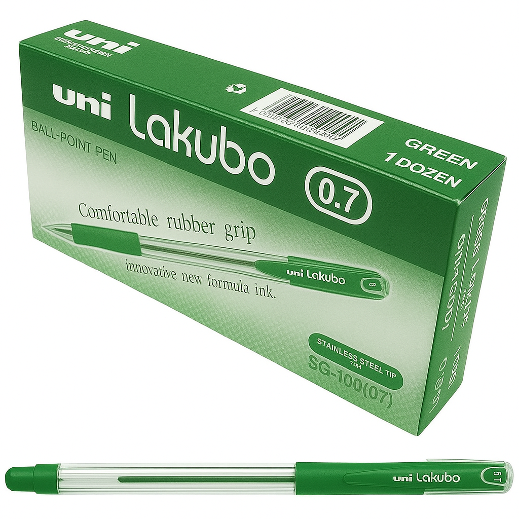 The Uni-Ball Lakubo SG-100 Ballpoint Pen is designed for smooth, reliable, and comfortable writing. With multiple tip sizes (0.7mm, 1.0mm, 1.4mm) and vibrant ink colours options (Blue, Black, Red, Green), this pack of 12 pens is perfect for schools, offices, and everyday use. Featuring a durable stainless-steel tip and quick-drying ink, Lakubo pens deliver precision and performance with every stroke.