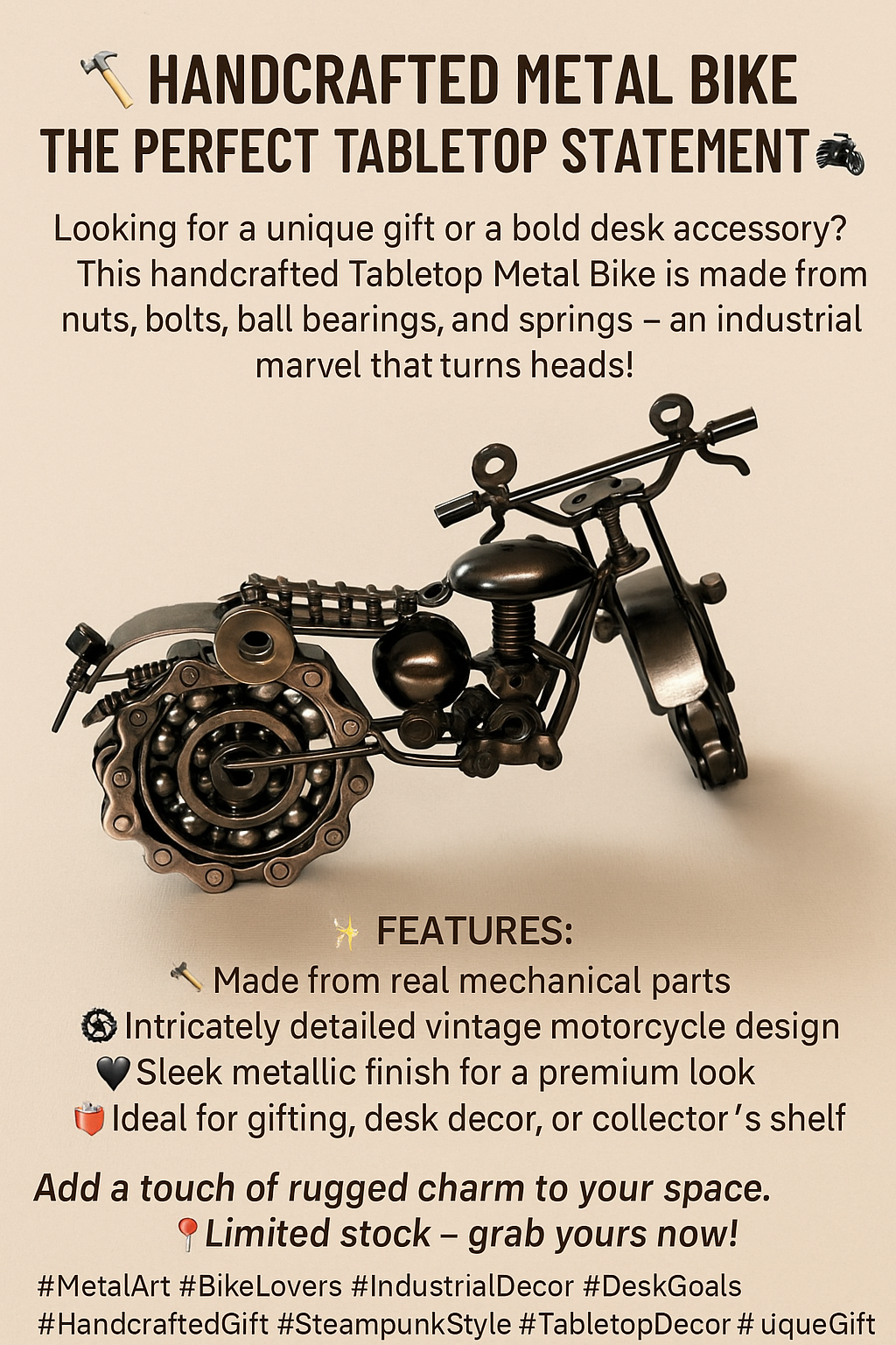 Perfect for home décor, office desks, cafés, restaurants, and studios, this model also makes a thoughtful gift. Ideal for birthdays, housewarmings, anniversaries, festive occasions, or as a special present for bike and motorcycle enthusiasts, it combines artistic value with emotional appeal.